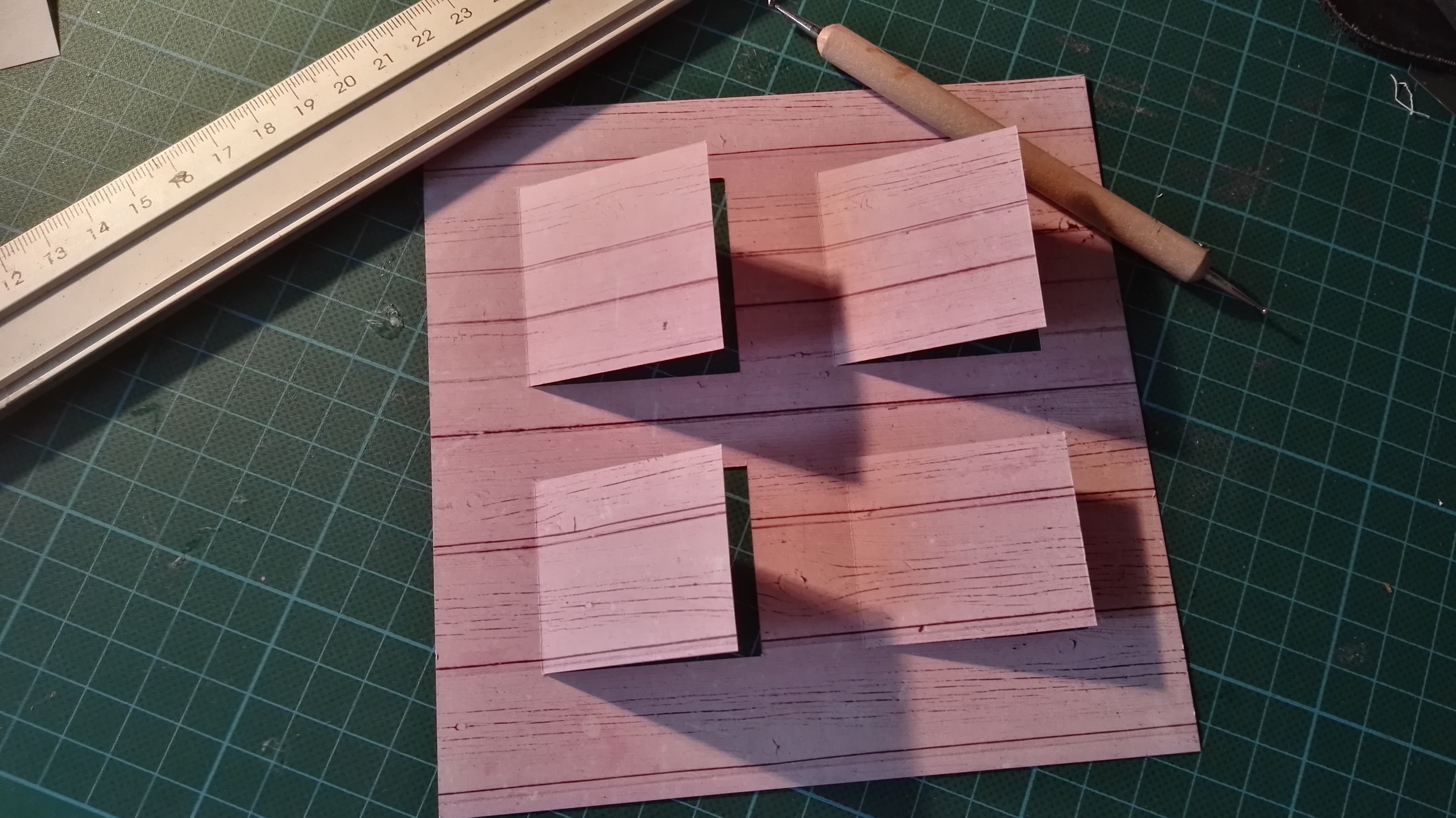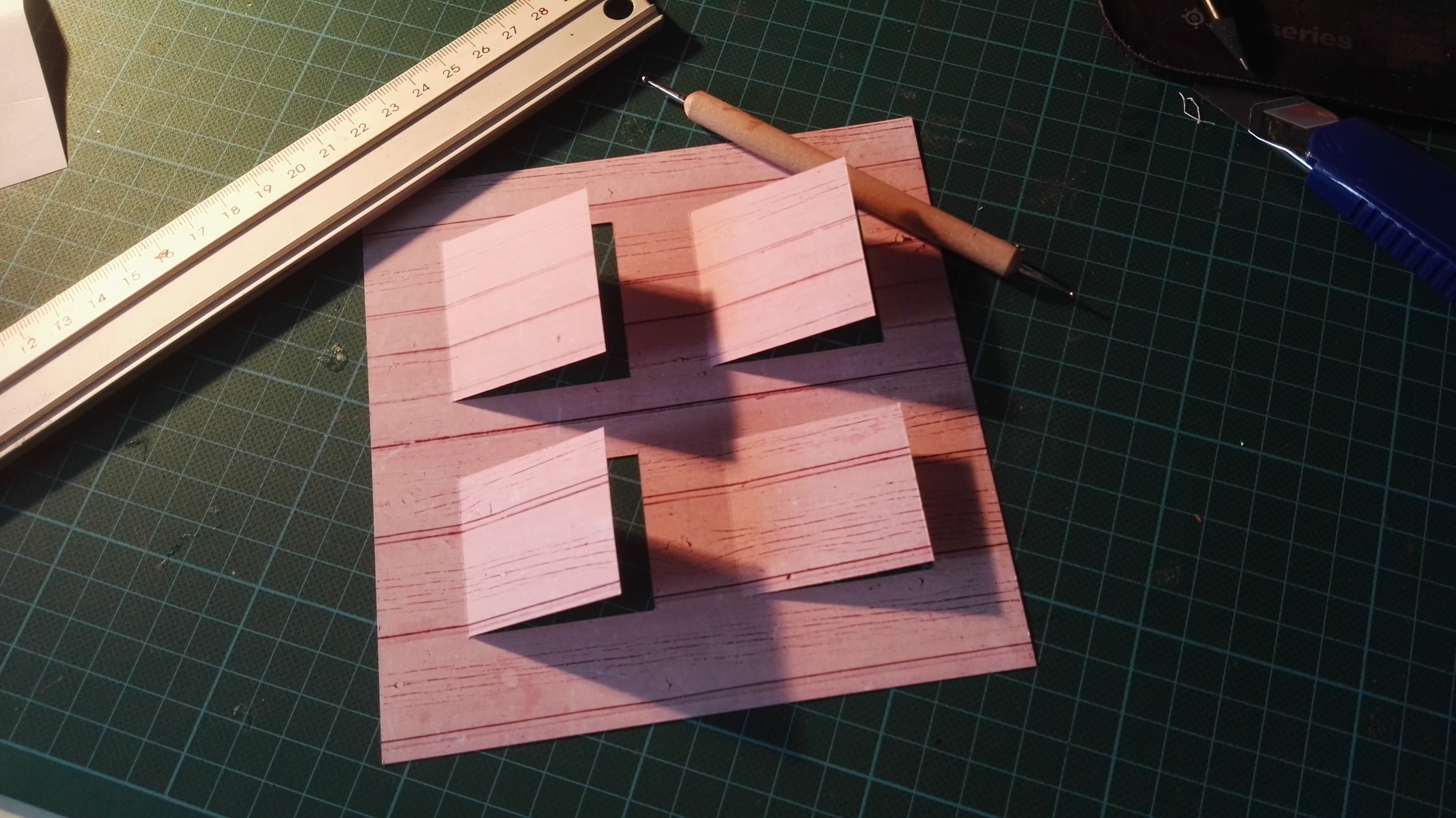 Auf dem 30 x 30 Paper wurde nun Layer für Layer aufgetragen. Kleinere Papiere im passenden Design hatte ich noch aus einem Restposten von Ebay 😉