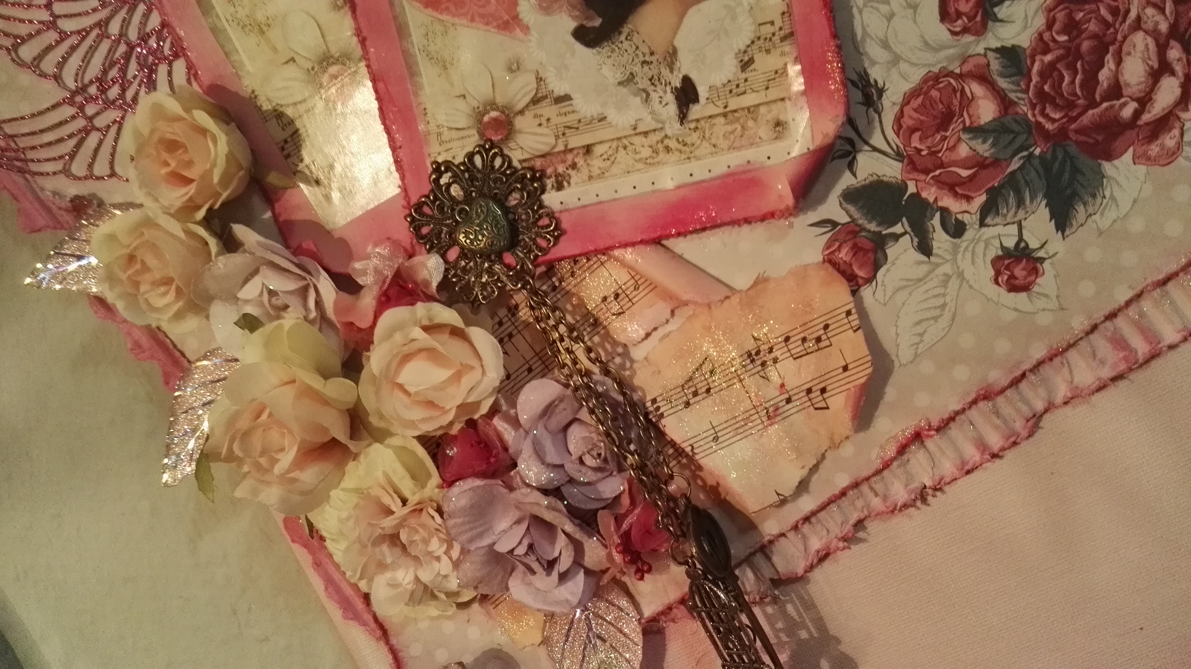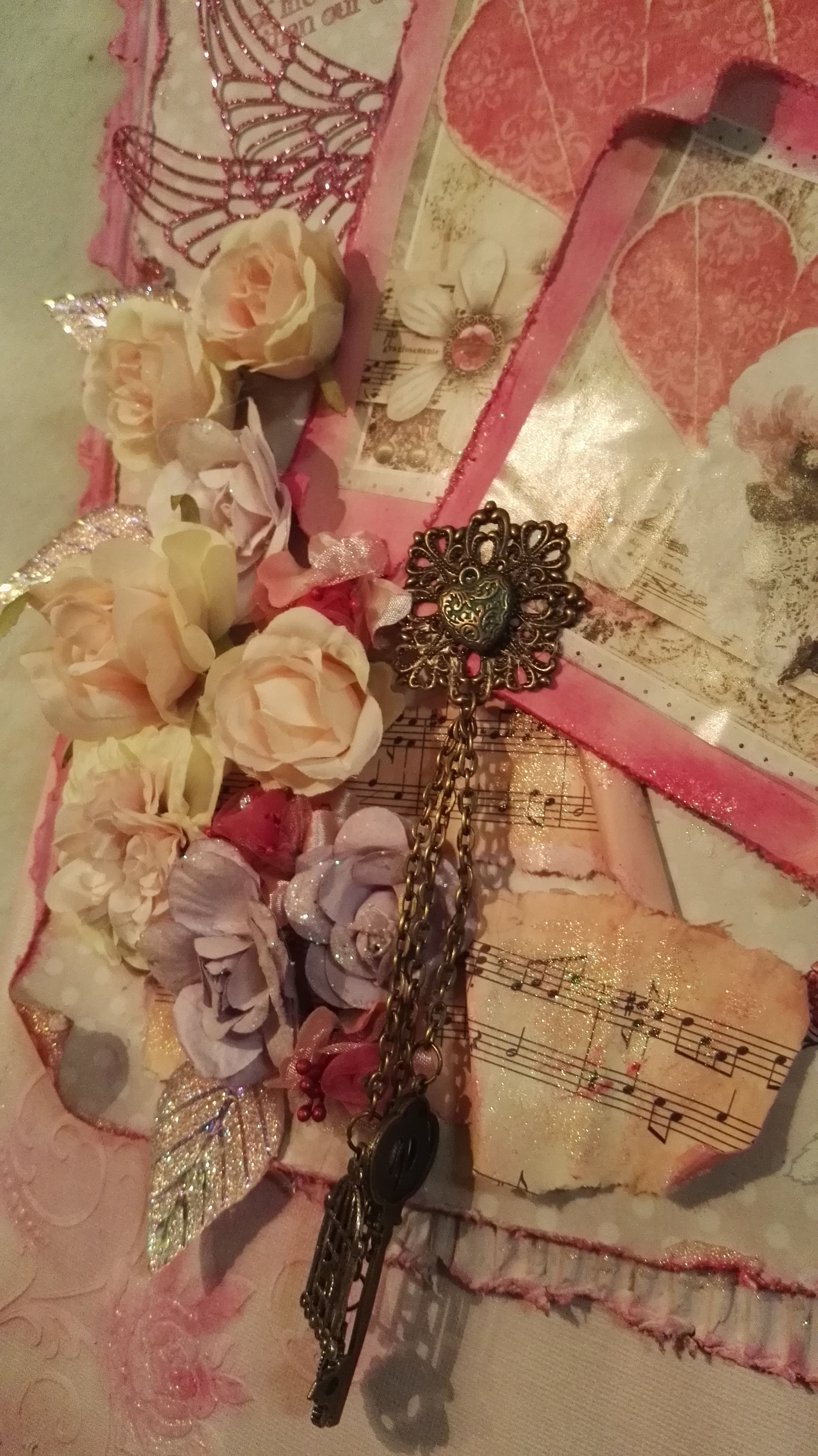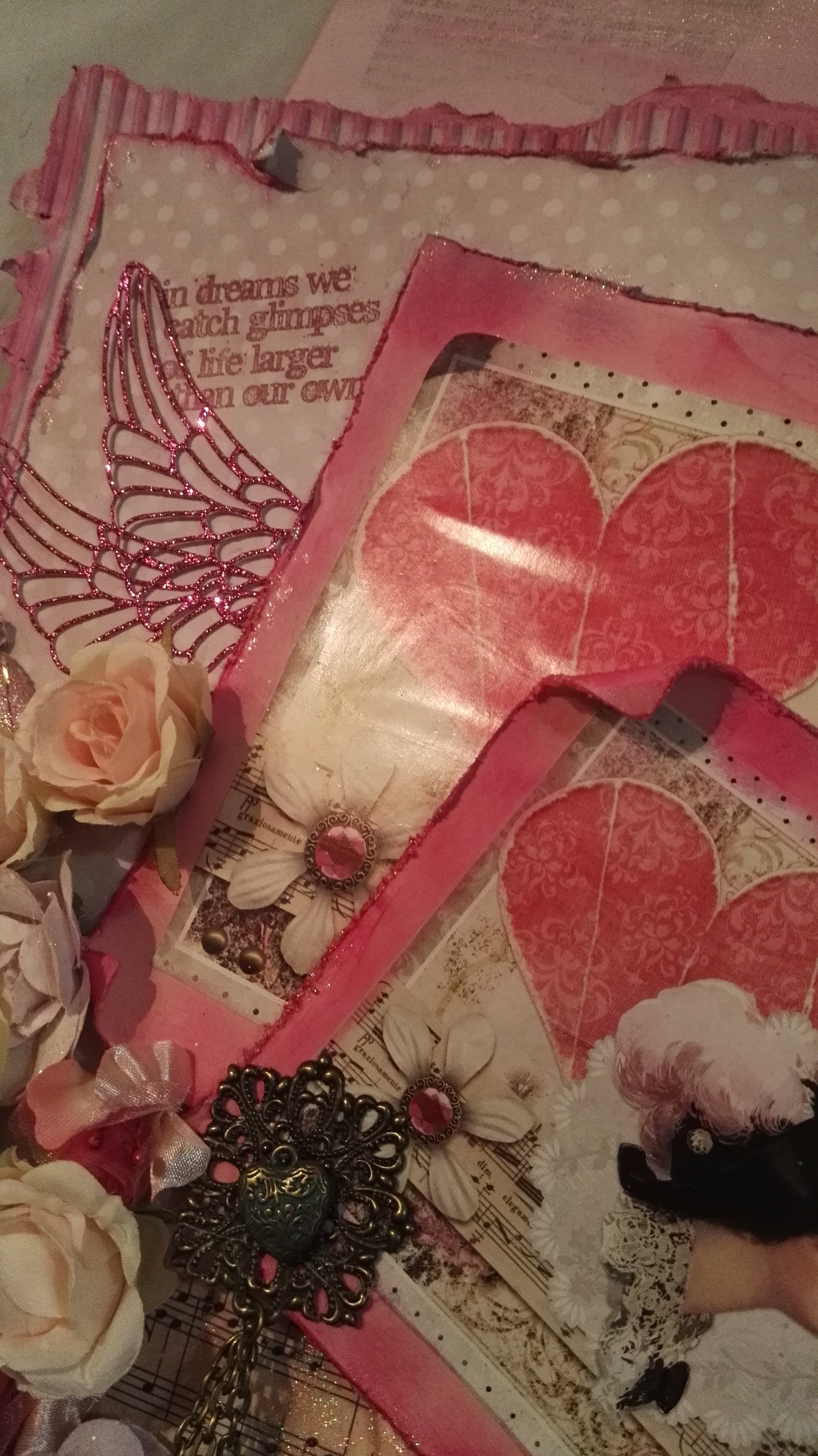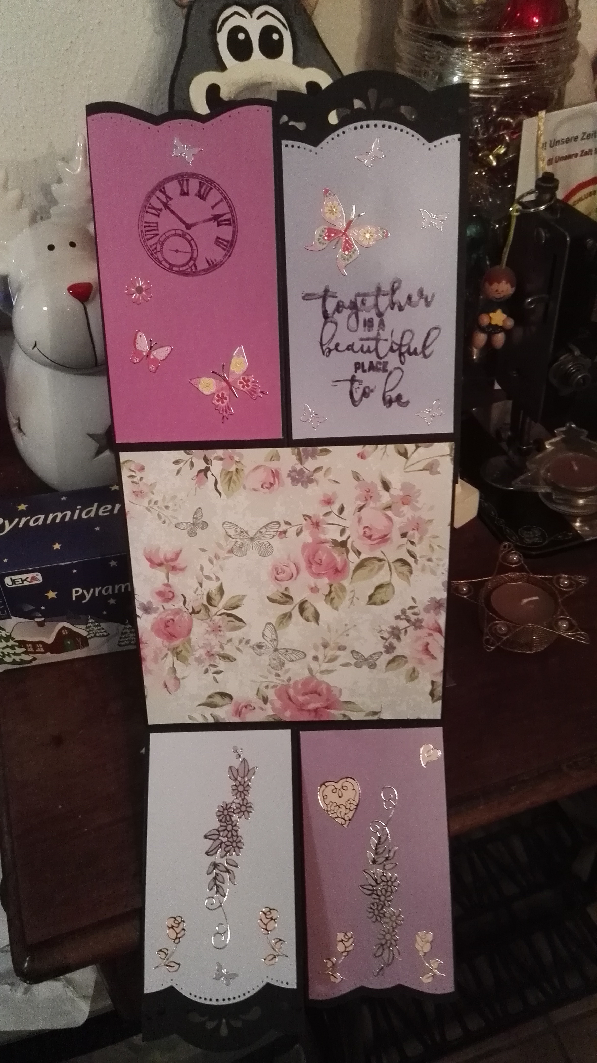 Als Abschluss kamen noch Blumen und Blätter und ein paar Schmuckstücke. Auch die Spruchstempel habe ich dann als Abschluss noch gesetzt.