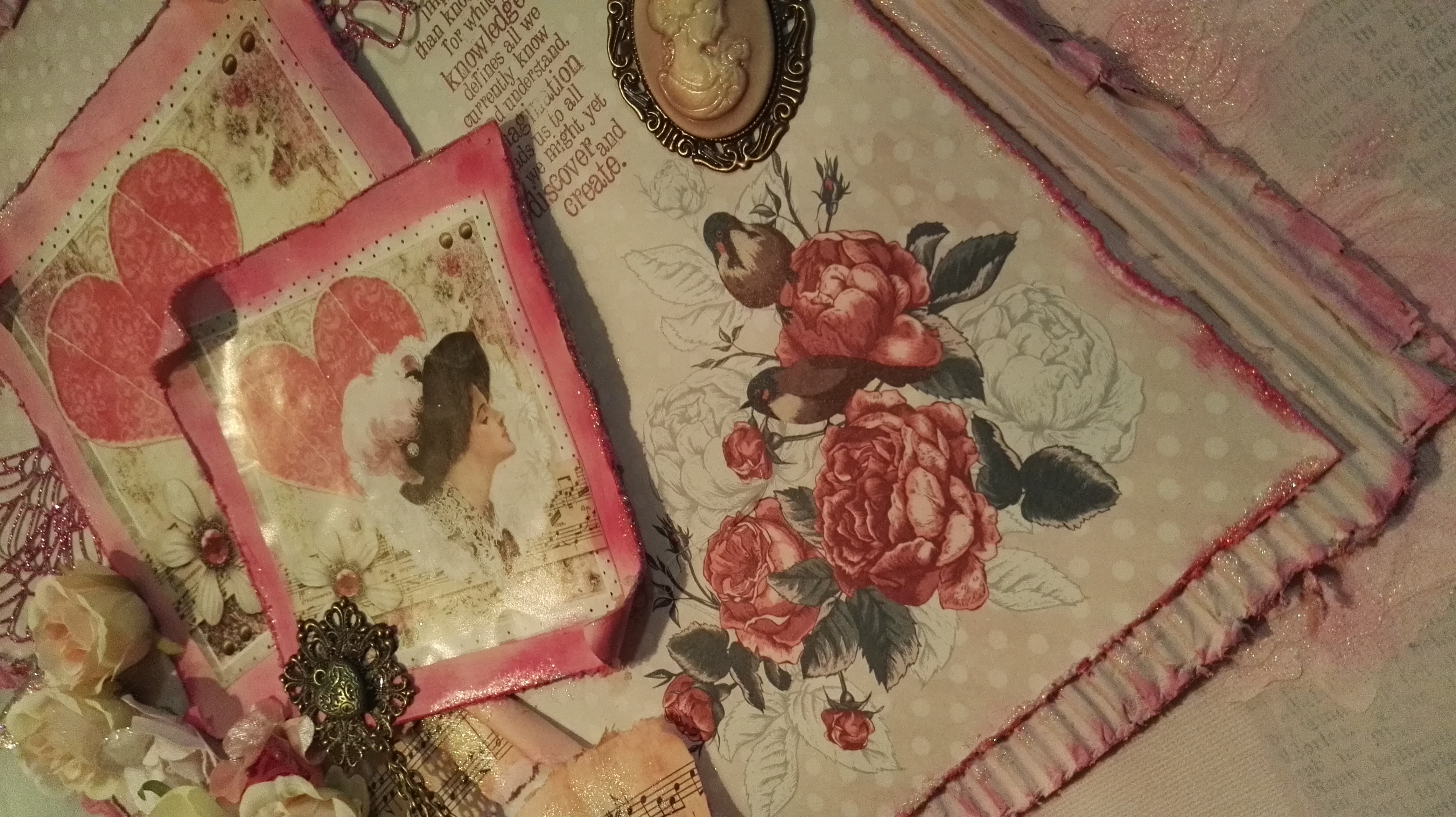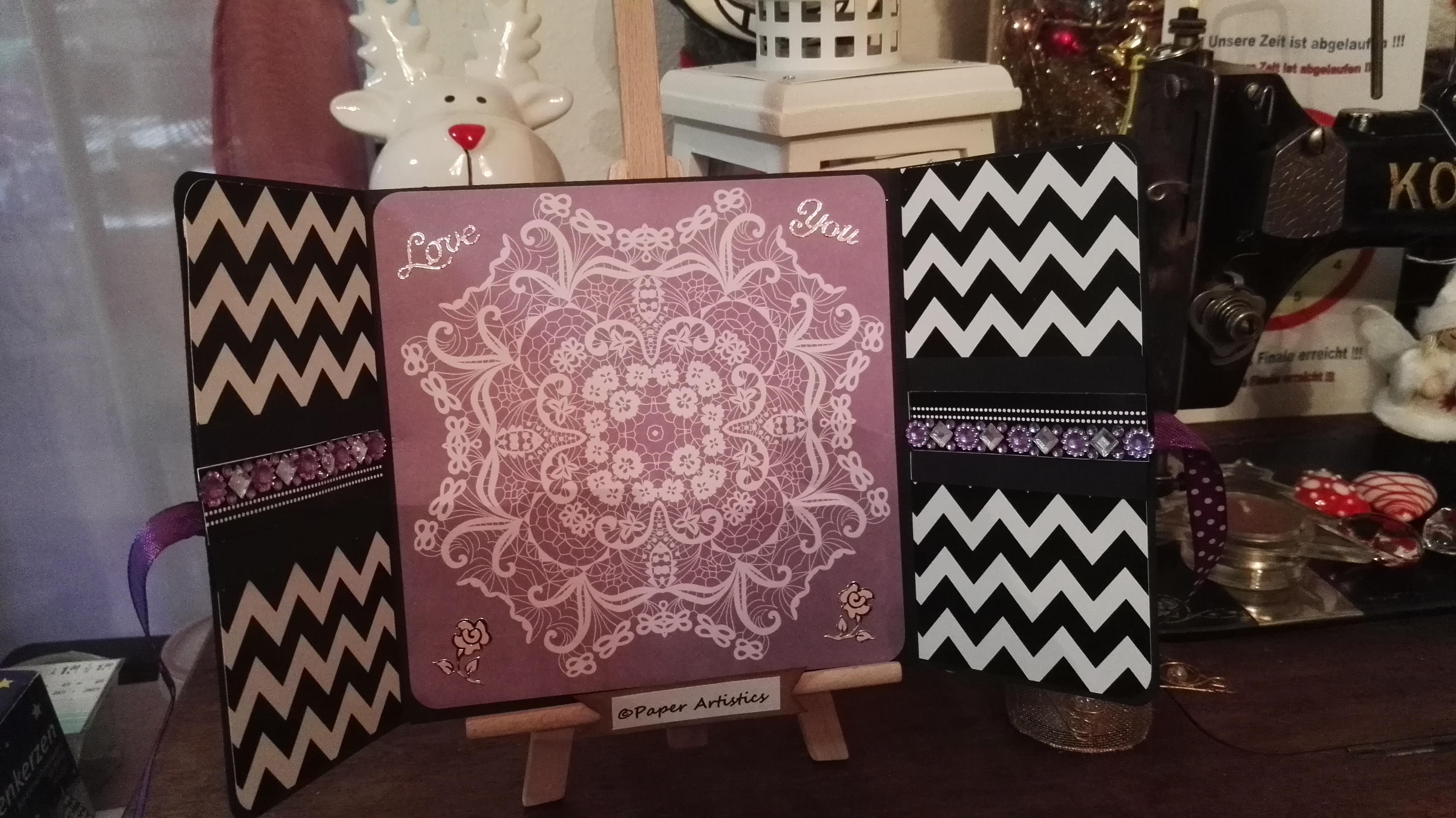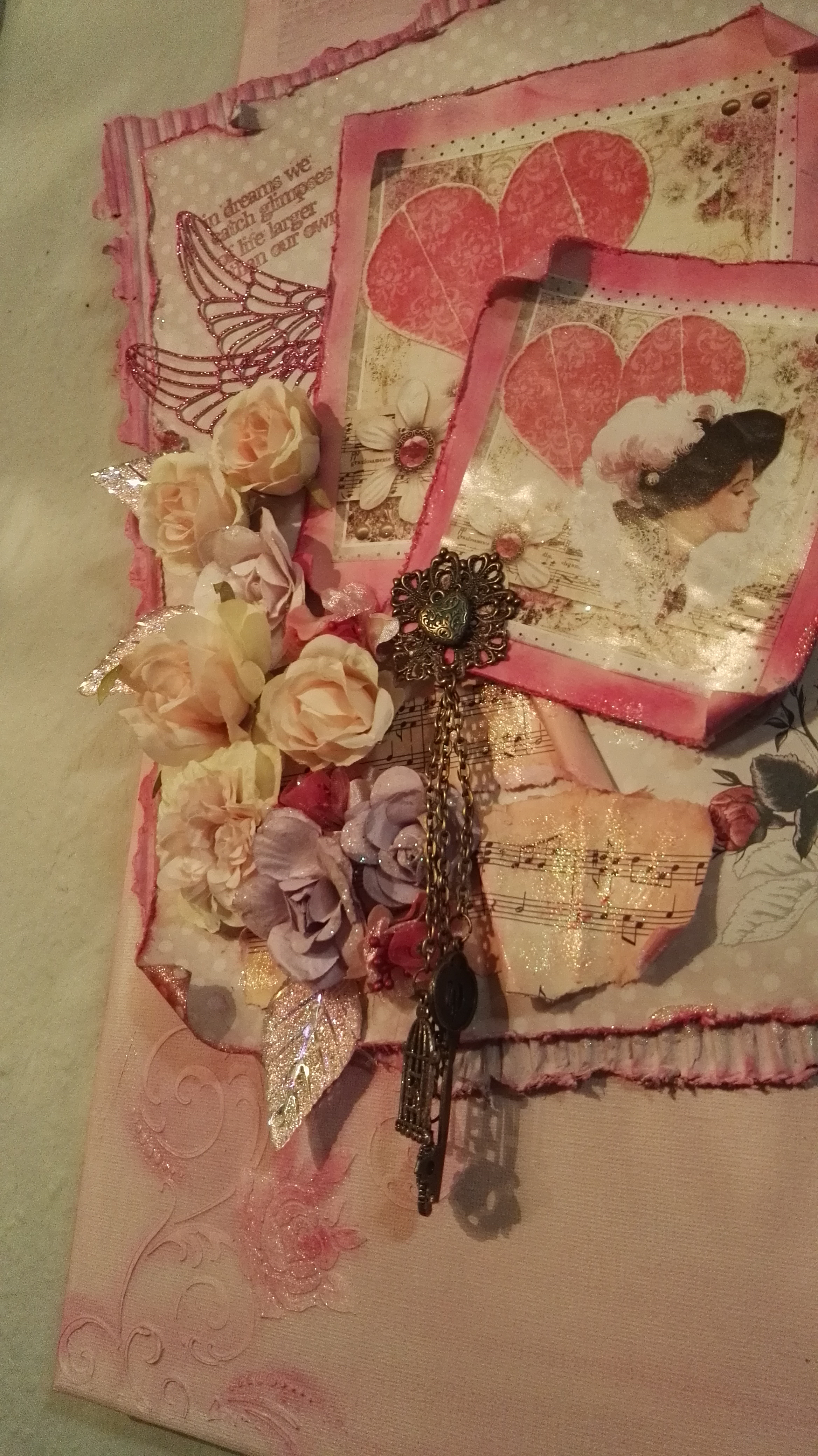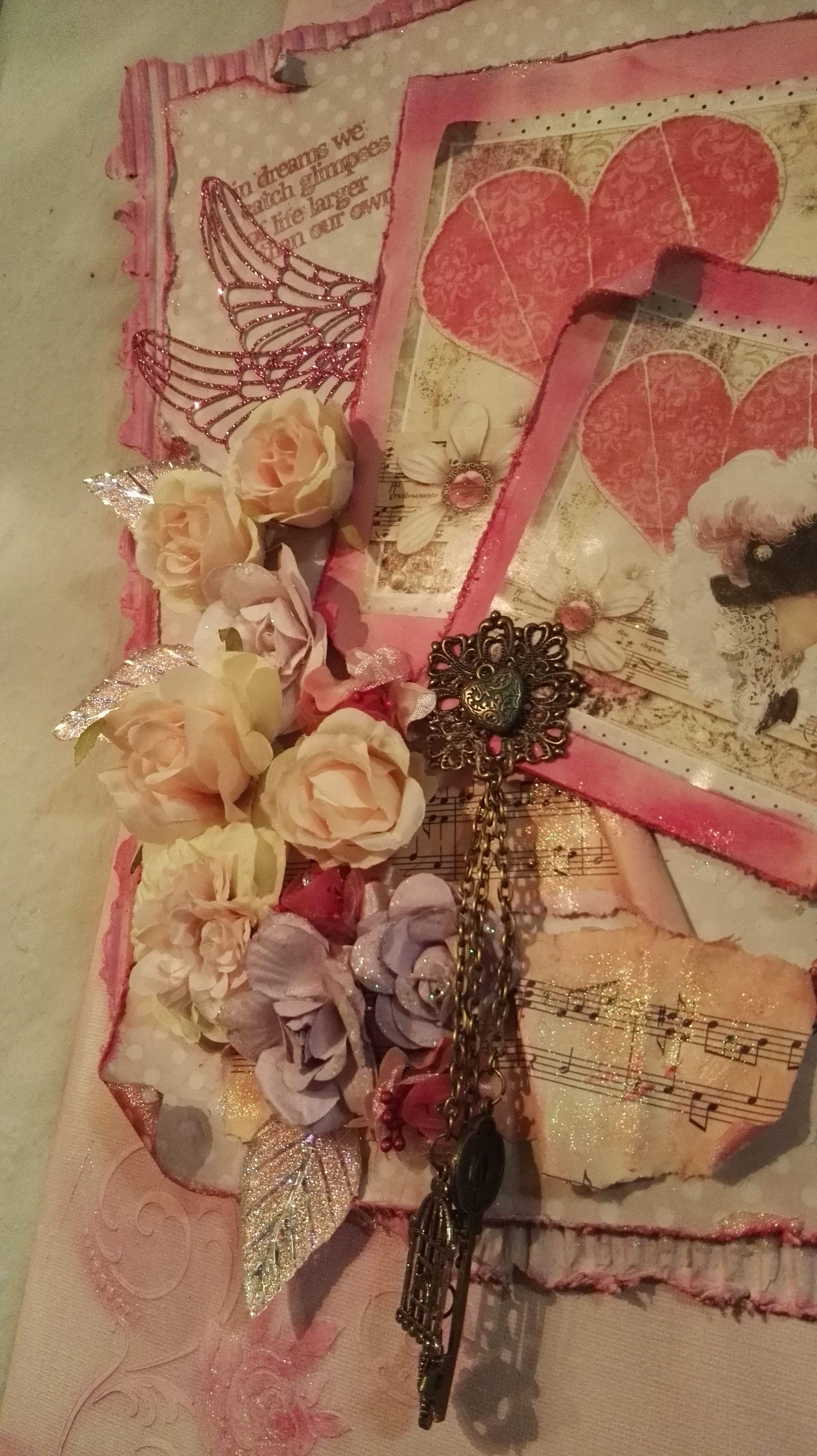 Als Abschluss kamen noch Blumen und Blätter und ein paar Schmuckstücke. Auch die Spruchstempel habe ich dann als Abschluss noch gesetzt.