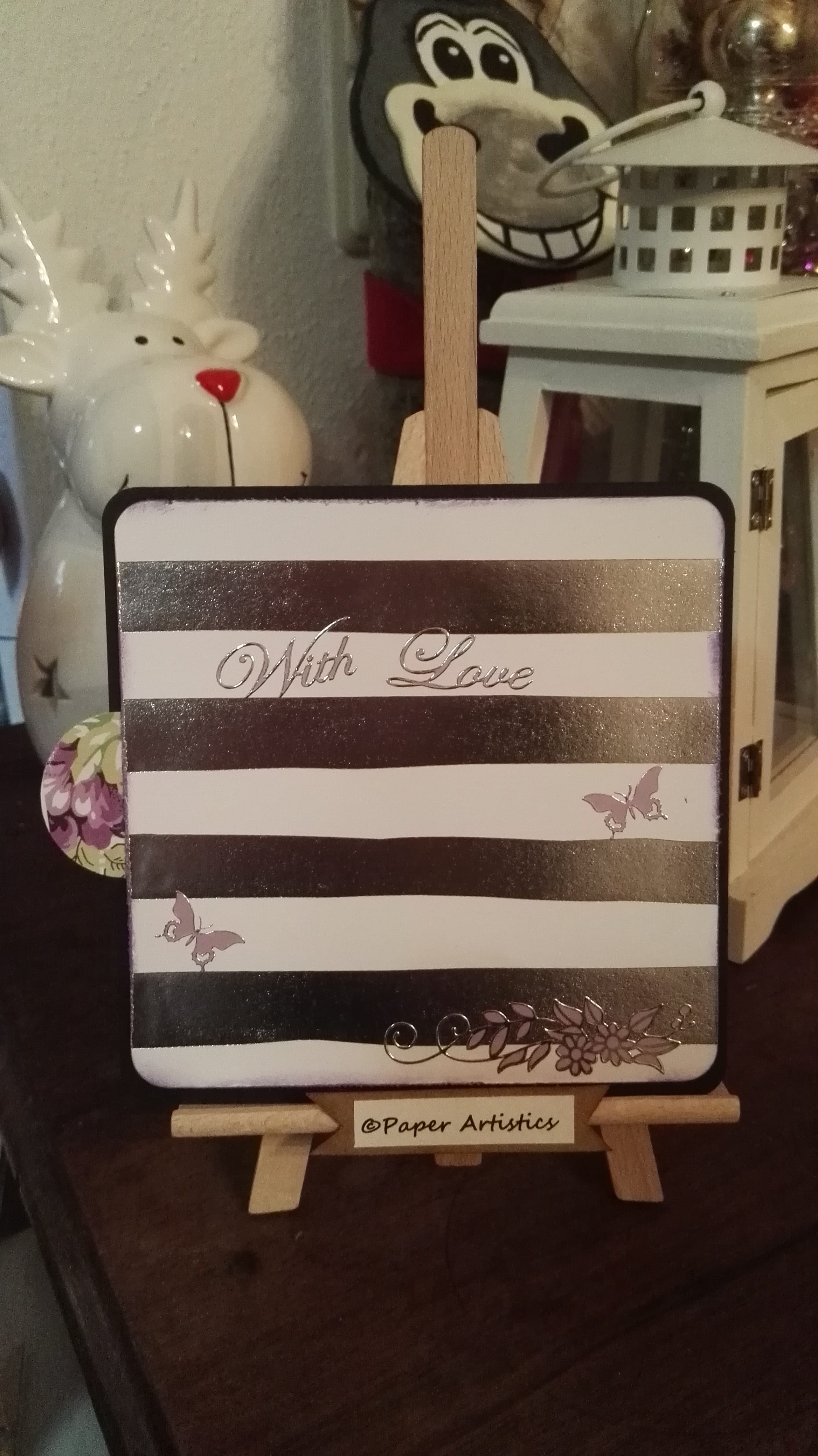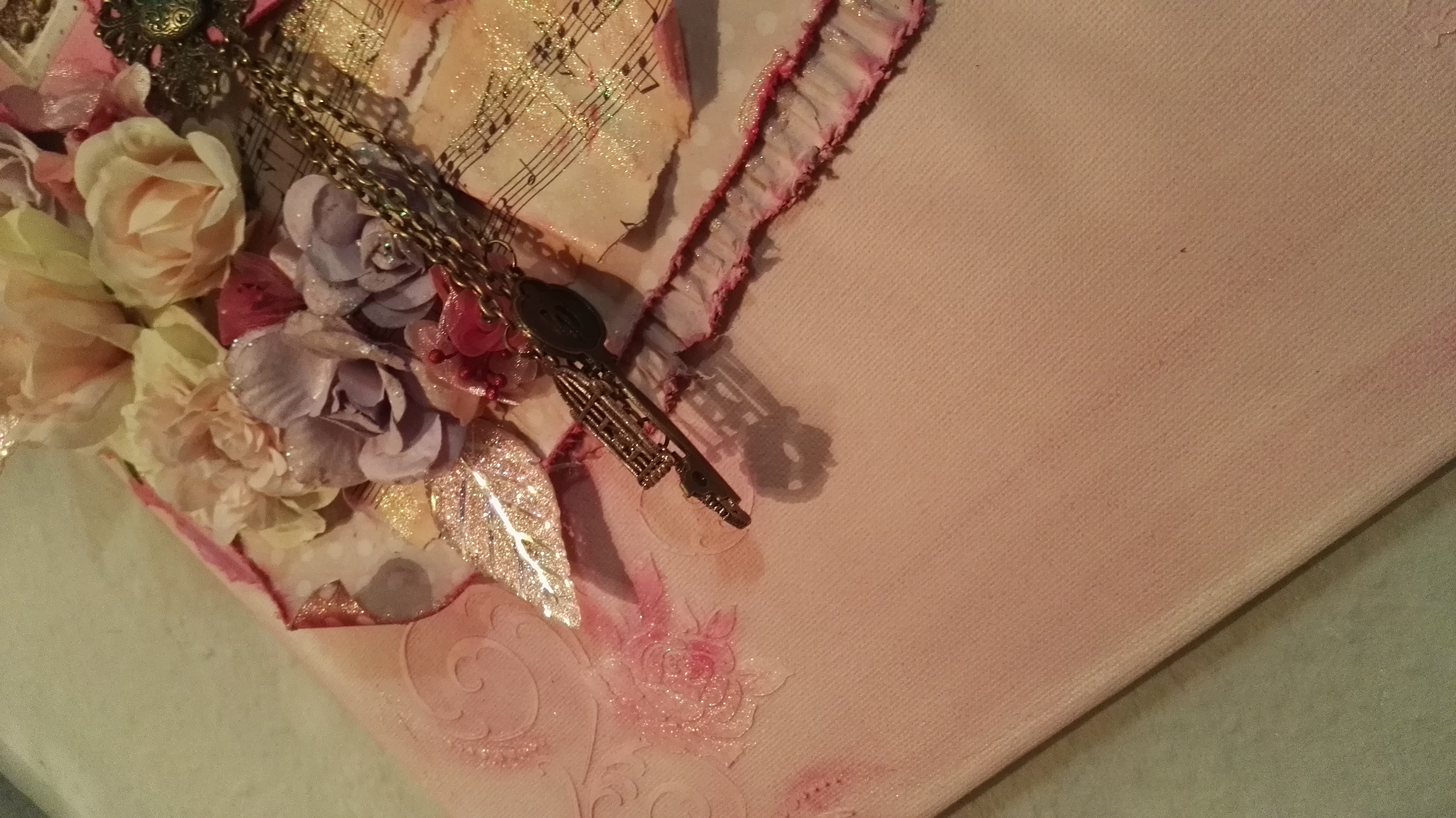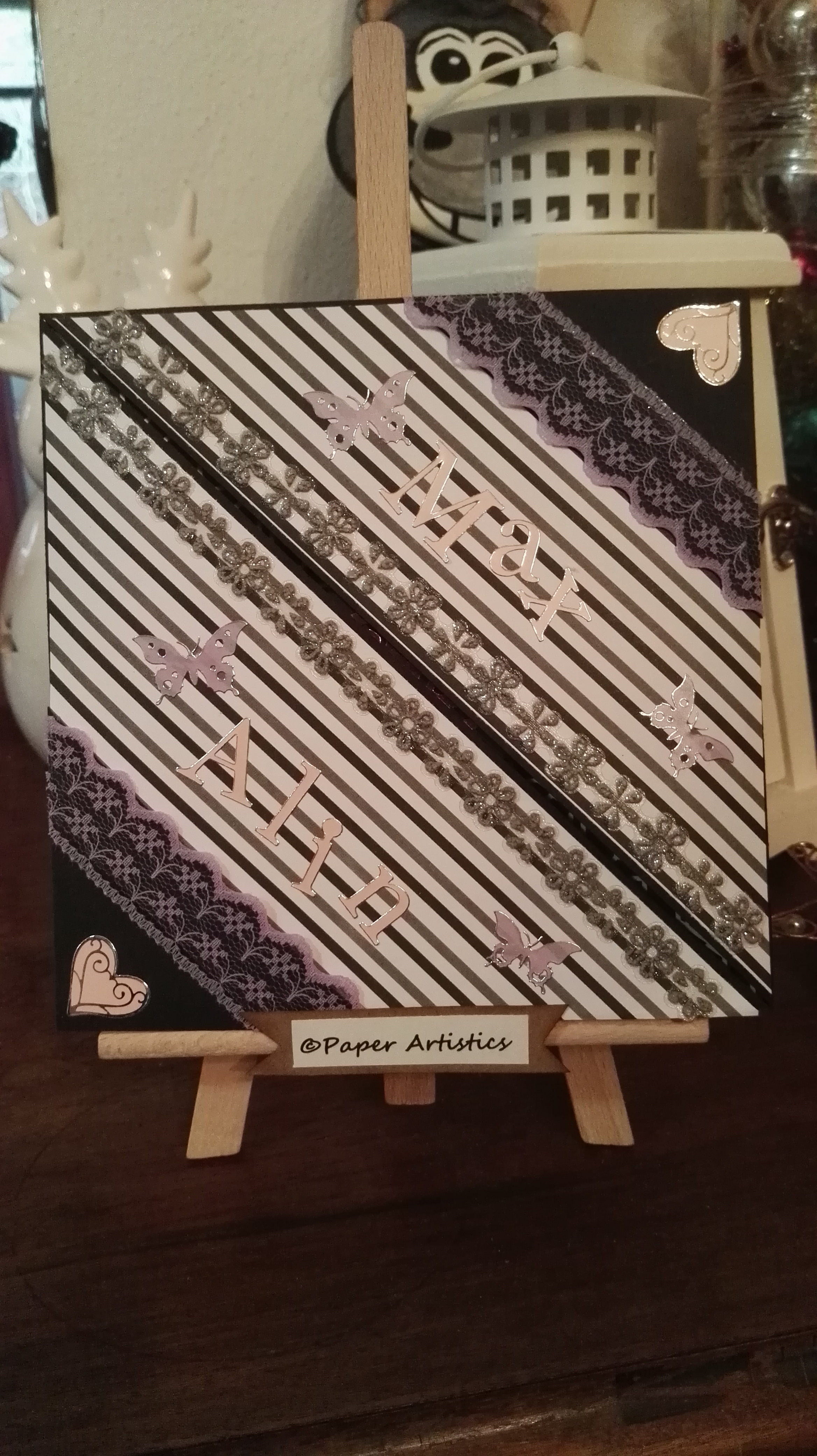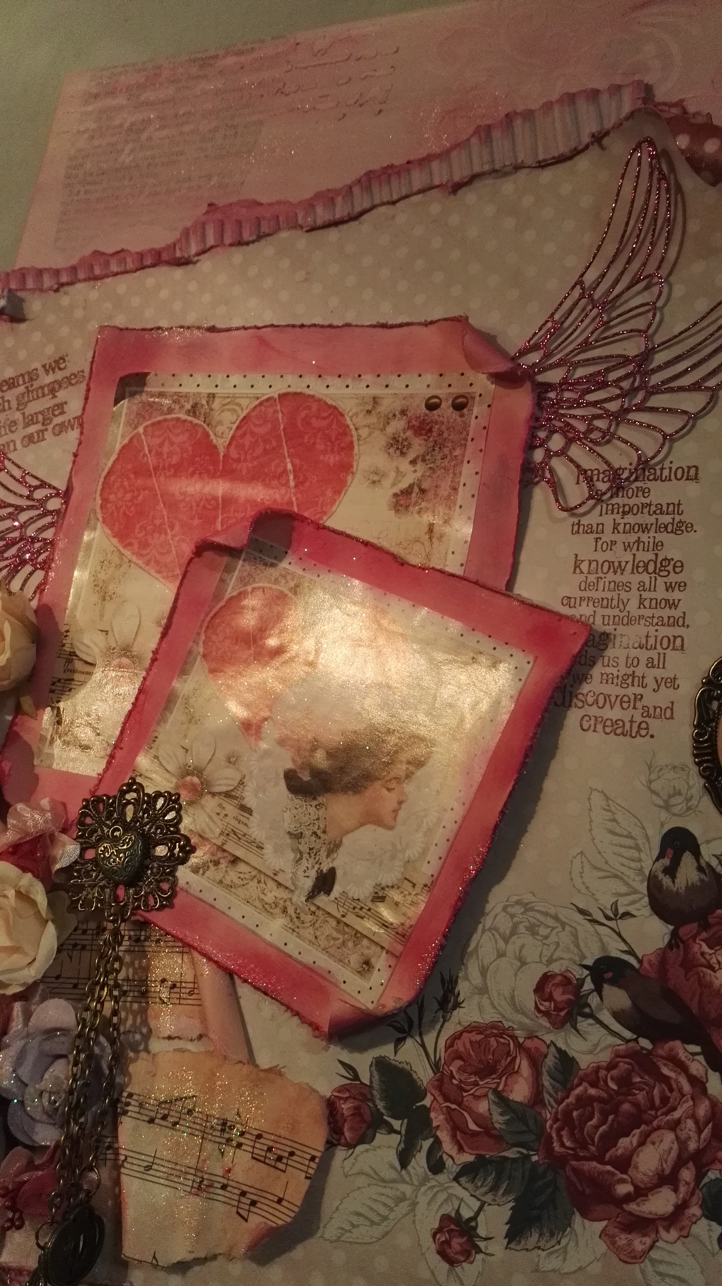 Als Abschluss kamen noch Blumen und Blätter und ein paar Schmuckstücke. Auch die Spruchstempel habe ich dann als Abschluss noch gesetzt.