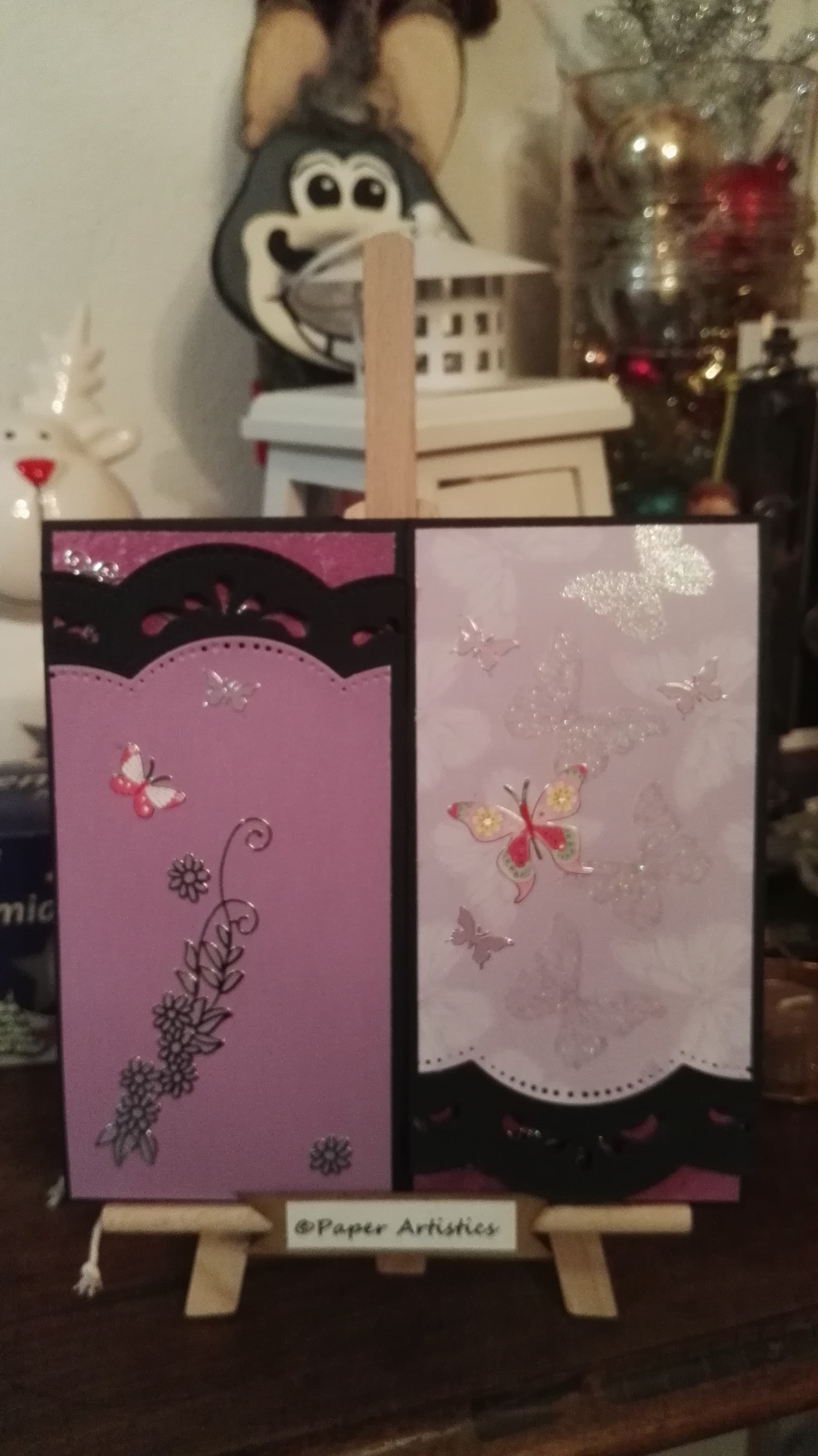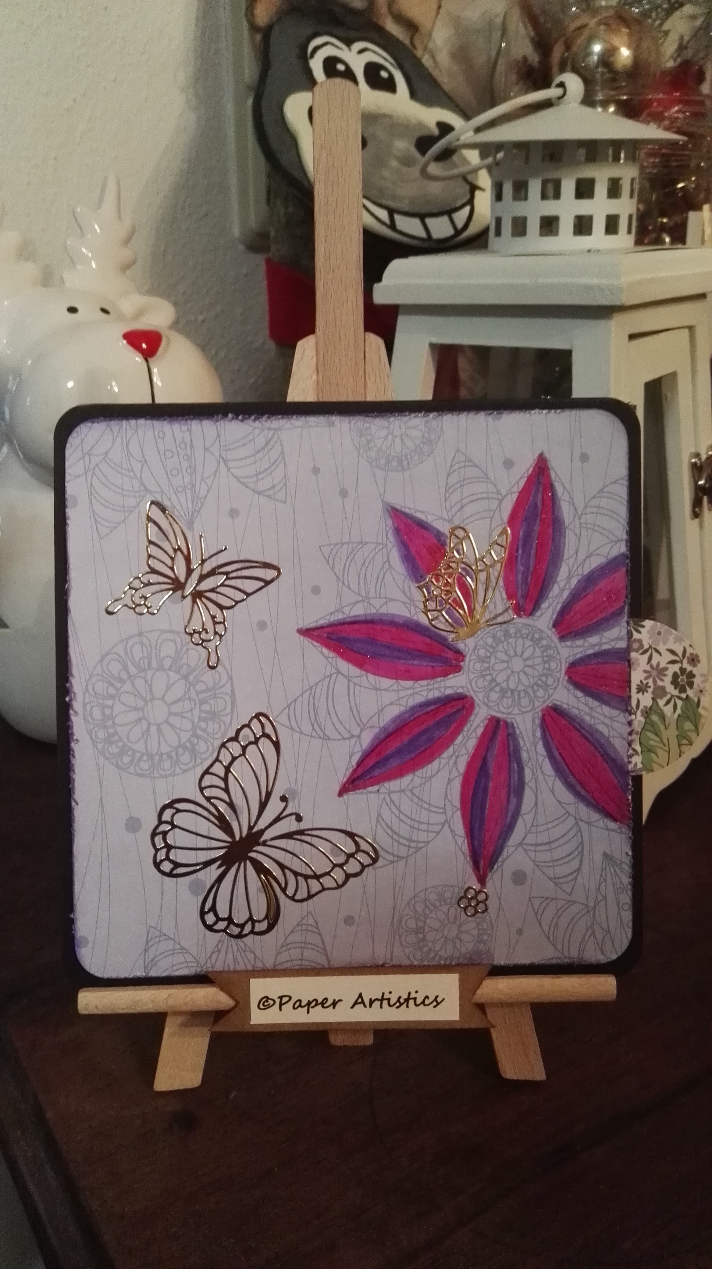 Demnächst folgen dann noch Schmetterlinge, bei diesen ATC habe ich schon den Hintergrund gestaltet mit Strukturmasse. Ich trockne diese gern etwas länger, so das ich nicht gefahr laufe, das die nicht ganz trocken ist und mir verschmiert.